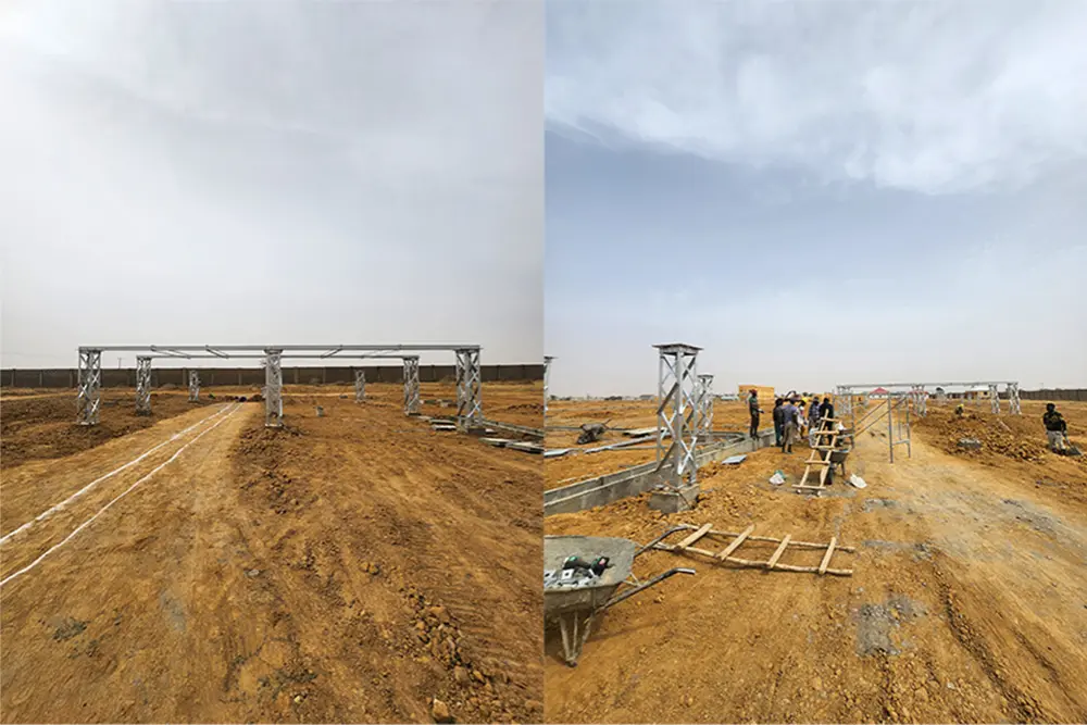 ဒေသတွင်း အပူချိန် 35.6 ဒီဂရီစင်တီဂရိတ်ထိ ရောက်နေသည့်တိုင် အမှုထမ်းများသည် လျင်မြန်စွာ လှုပ်ရှားနေကြသည်။ သွပ်ရည်စတီးလ် အစိတ်အပိုင်းများကို ယခုအခါ မြေပြင်ပေါ်တွင် တပ်ဆင်ရန် အသင့်ဖြစ်နေပြီဖြစ်သည်။ အဆိုပါ အဆောက်အဦများသည် 330kV ဓာတ်အားခွဲရုံ၏ လေးလံသောလိုအပ်ချက်များကို ကိုင်တွယ်ဖြေရှင်းရန်နှင့် ဒေသတွင်း မဟာဓာတ်အားလိုင်းအတွက် ရေရှည်တည်ငြိမ်မှုရှိစေရန် တည်ဆောက်ထားခြင်း ဖြစ်သည်။